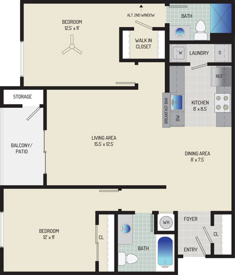 2 Bedrooms + 2 Baths + Den 2 Beds 2 Baths 1080 - 1095 sqft $2,293 - $2,433 per month Inquire for Availability View Details